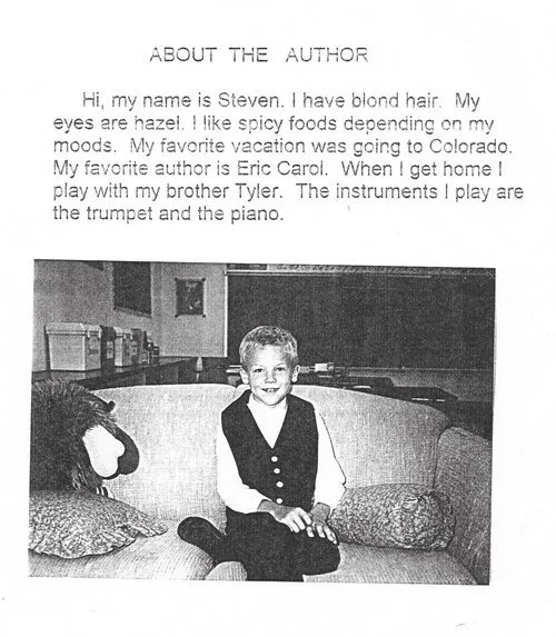 This is Steven’s real "About the Author" page from a book he wrote as a kid. He’s come a long way since then—but the dream of being an author has stayed the same.